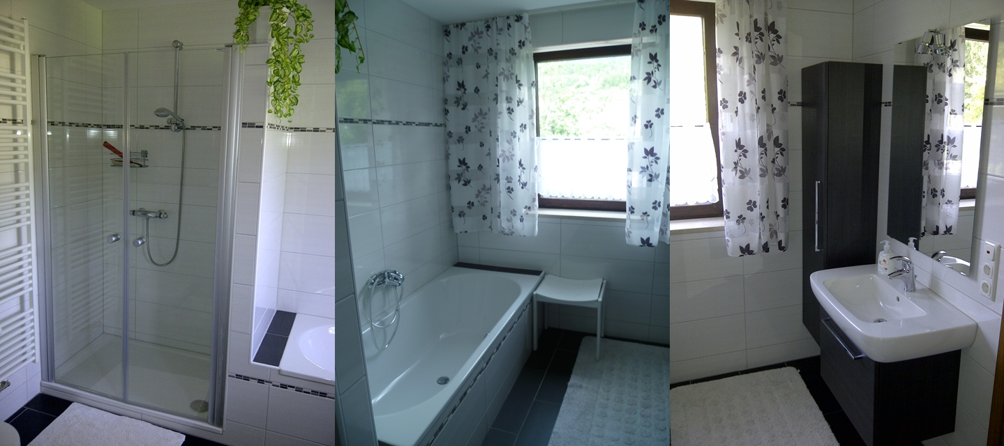 Im Badezimmer finden Sie einen Schrank mit Handtüchern, Trockentüchern ... und natürlich auch die Gerätschaften für die kleine Reinigung zwischendurch (Besen Staubsauger ...). Bei Bedarf stehen Ihnen im Keller auch Waschmaschine und Trockner zur Verfügung.